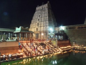 element. Therefore Maha Shivarathri has a special significance here. The Arunachaleswara temple gates open at around 2 in the morning on that day and after the initial abhishekam and puja, laksharchana (chanting the Lord’s name one hundred thousand times) begins and continues till late afternoon. The temple is open the whole night with pujas at three-hourly