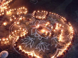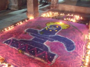 Lord Shiva. Many were engaged in making enormous colourful designs (kolams) on the floors depicting various forms of Shiva. Thousands and thousands of fire lamps were lit everywhere. Every stone vibrated with the tremendous Shiva energy which was descending like an avalanche from the Heavens. Giri Pradakshina