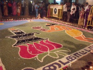Tiruvannamalai, the Pongal festival has a special significance because Arunachala is believed to have subdued the Sun’s arrogance at one time. In lieu of this, the Sun God is believed to pay obeisance to Arunachala twice a year on the days of the winter and summer solistices. In the big temple of Arunachaleswara, there is a remarkable procession and abhishekam to commemorate this event, early in the morning of 16th January.