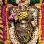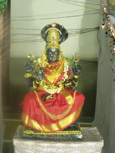 She is beautifully adorned in a silk sari and decked with golden ornaments and flowers. After this a long queue of women devotees offer bracelets and