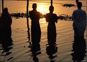 month of Aadi (Mid july -August). This year it happened on the third of August. This festival is also called as “Padinettam perukku” – Padinettu -means 18 and Perukku signifies a great rising. The Aadi month falls during the south-west monsoon period and during this month all the south Indian rivers would normally get flooded by the rains. Aadi Perukku is celebrated in Tamilnadu and it is a time of rejoicing for the farming community who live on the banks of the main rivers and their tributaries. People perform special pujas to the river on this day. Hundreds of devotees, especially newly married couples celebrate this festival and worship the Mother Goddess on the banks of the river.