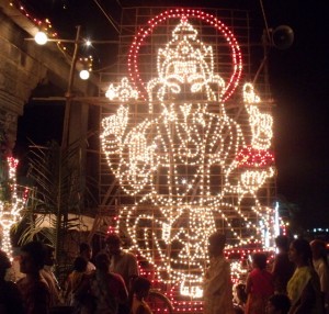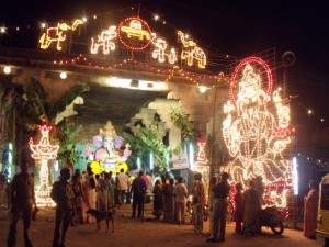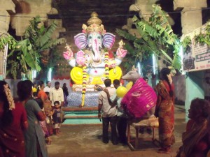 Vinayaka Chathurthi is the birth anniversary of Lord Ganesha and is celebrated in a grand manner all over India and in Tiruvannamalai also. All over the town, there were idols of Ganesh installed in special shrines and worshipped with pujas and loud chanting in praise of the favorite elephant god. This year, Ganesha Chathurthi fell on the 31st of August. Hindus believe that Lord Ganesha is the God who has the power of removing all obstacles and making one’s path clear whether it be worldly or spiritual. Any new undertaking, either at one’s place of work or at home, always starts by reciting a mantra invoking his blessings. He is also known as the God of good luck and prosperity.