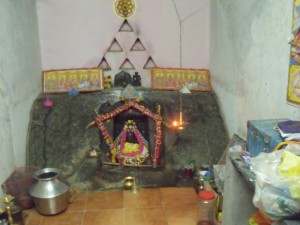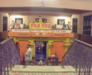 and evening to participate in the pujas and make offerings of flowers and fruits to the deity.In spite of its sinister location, that of being right beside the crematorium, people are not put off in anyway, and so young and old alike come eagerly at all times to take darshan of Lord Isanya Shiva. The inner sanctum is an underground chamber and after entering the temple one needs to descend a flight of steps which lead to the inner sanctum. This seems to be a special feature of this shrine and it is quite thrilling