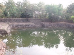 pond called Krishna theertham due to the little Krishna shrine which is found just in front of it. This pond has fallen into a state of disuse and needs to be cleaned up ideally, which would make it another good clean natural source of water for the animals and birds which flock here to drink the water and enjoy the cool shade from the trees.