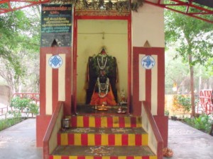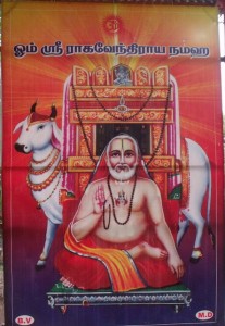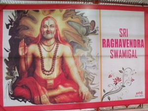 shrine consists of a stone statue of Sri Raghavendra depicted against a stone scultpure of Kamadhenu, the celestial wish fulfilling cow. The maintenance and running of the temple are funded by a local private group of Raghavendra devotees who come daily in the evening to participate in the pujas. There is also a daily feeding of Sadhus at this time. On festival days this temple is often a venue for carnatic music concerts with the participation of good musicians from Chennai. And so this has become a regular halt for traditional music lovers in the area.continue reading