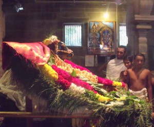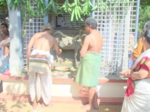 Mahapuja is the anniversary of the Mahasamadhi day of Bhagavan Ramana Maharshi’s Mother. It is celebrated every year in the Ramanashram inside the Mathrabhutheswara shrine where the Mother’s mortal frame was buried. This year it took place on !3th June.