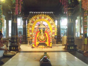 divine mother dancing out of the flames and blessing all the devotees with her power. There is a tremendous wave of energy which arises around and one is well rewarded for having braved the summer heat and partaken in this hot and firy event. The many kalasams of holy water which are consecrated during the homam are then taken into the shrine through an elaborate procession and later abhishekam is performed on the Sri Chakra and the deities inside the sanctum sanctorum with these waters.This afternoon, during a conversation regarding old Sankara