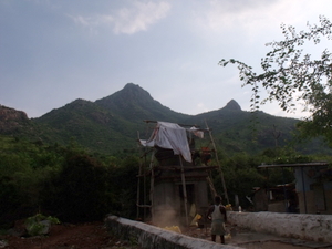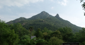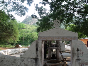 When one walks along the outer giripradakshina path, about a hundred metres after the Kubera Lingam shrine, one can see on the right a curious shrine with five small Shiva Lingams on a raised pedestal circumscribed by a round stone platform. It is titled Arunachala Panchamukham in tamil old-fashioned script. If one looks at the mountain from this point there are distinctly five peaks visible with very beautiful contours. This is called Panchamukham – the five faces. The five peaks here represent the five aspects of Lord Shiva viz., Satyajotam, Vamadevam, Tatpurusham, Eesanyam and Aghoram. And a giripradakshina cannot be complete unless one has taken dharshan of the Panchamukham.