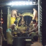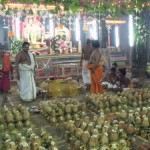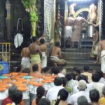wonderful abhishekam, the actual “thirumanjanam” rite (literally meaning sacred bath) is performed and the deities are worshipped with alamkaram, karpuraratti and deeparadhana.