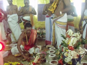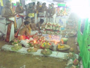 Vaikasi Amavasya. This happens to be an important occasion in the big temple of Arunachaleswara and one of the grandest abhishekams of the year is celebrated to the Utsava Murthy, Lord Shiva-Somaskanda (whose shrine is in the left corridor of the inner mandapam of the main sanctum). The ceremonies start early in the morning with Rudra japa and Mahanyasam during which the kalasams and all the abhishekam elements are consecrated.