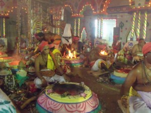 of the vedic chants, the exotic rituals surrounding the fires and the divine energy which seemed to pervade and rise with the passage of each day. More than 300 venerable brahmin priests hailing from the four vedic traditions of Rig, Yajur, Sama and Atharvana took part with great devotion and expertise in all the ceremonies and devotees were treated to a sumptuous feast of religious extravaganza during all the 6 days.