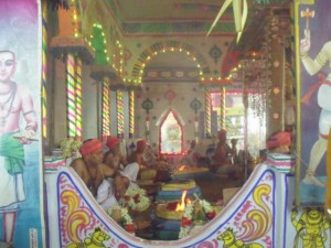Mahapuja is the anniversary of the Mahasamadhi day of Bhagavan Ramana Maharshi’s Mother. It is celebrated every year in the Ramanashram inside the Mathrabhutheswara shrine where the Mother’s mortal frame was buried. This year it took place on !3th June.
